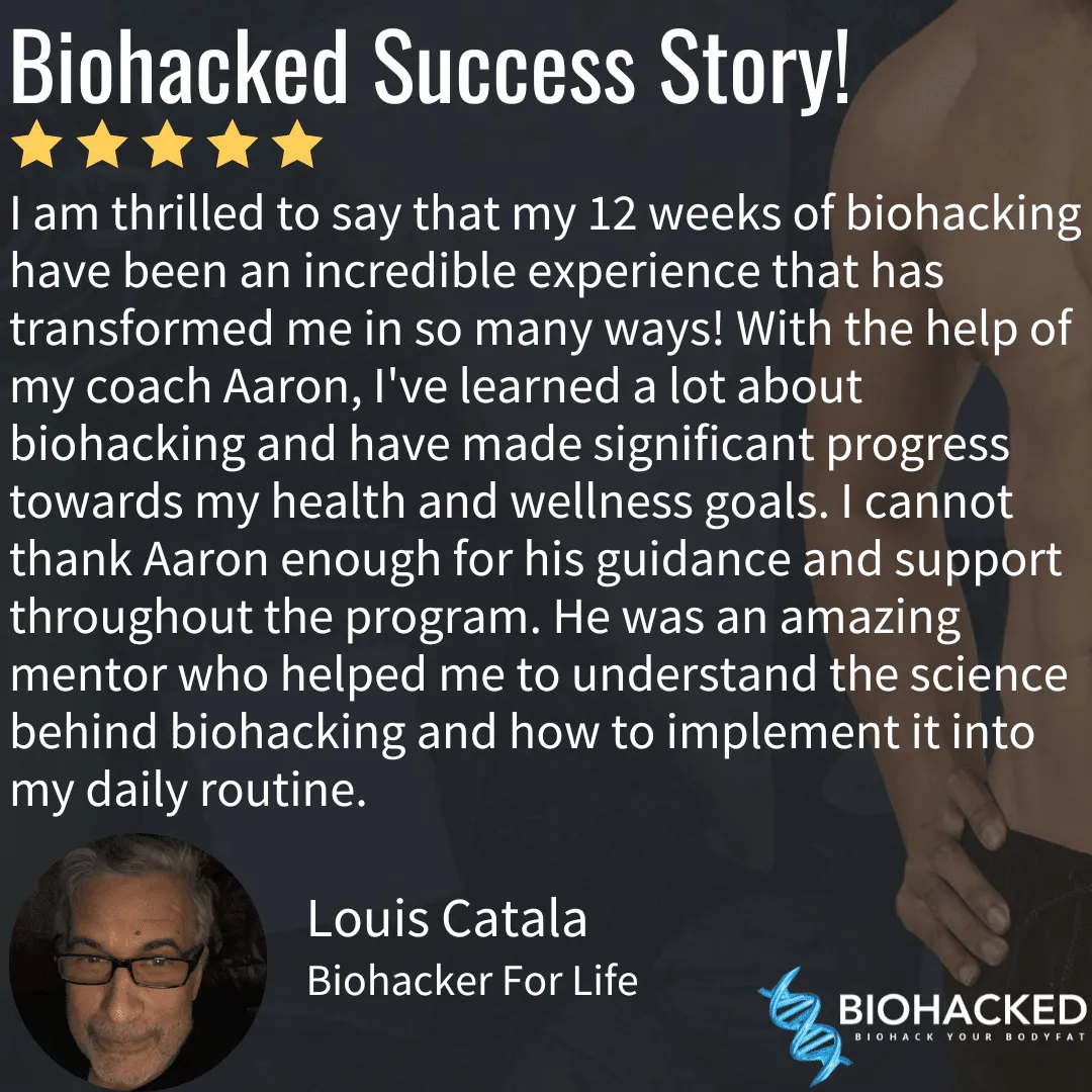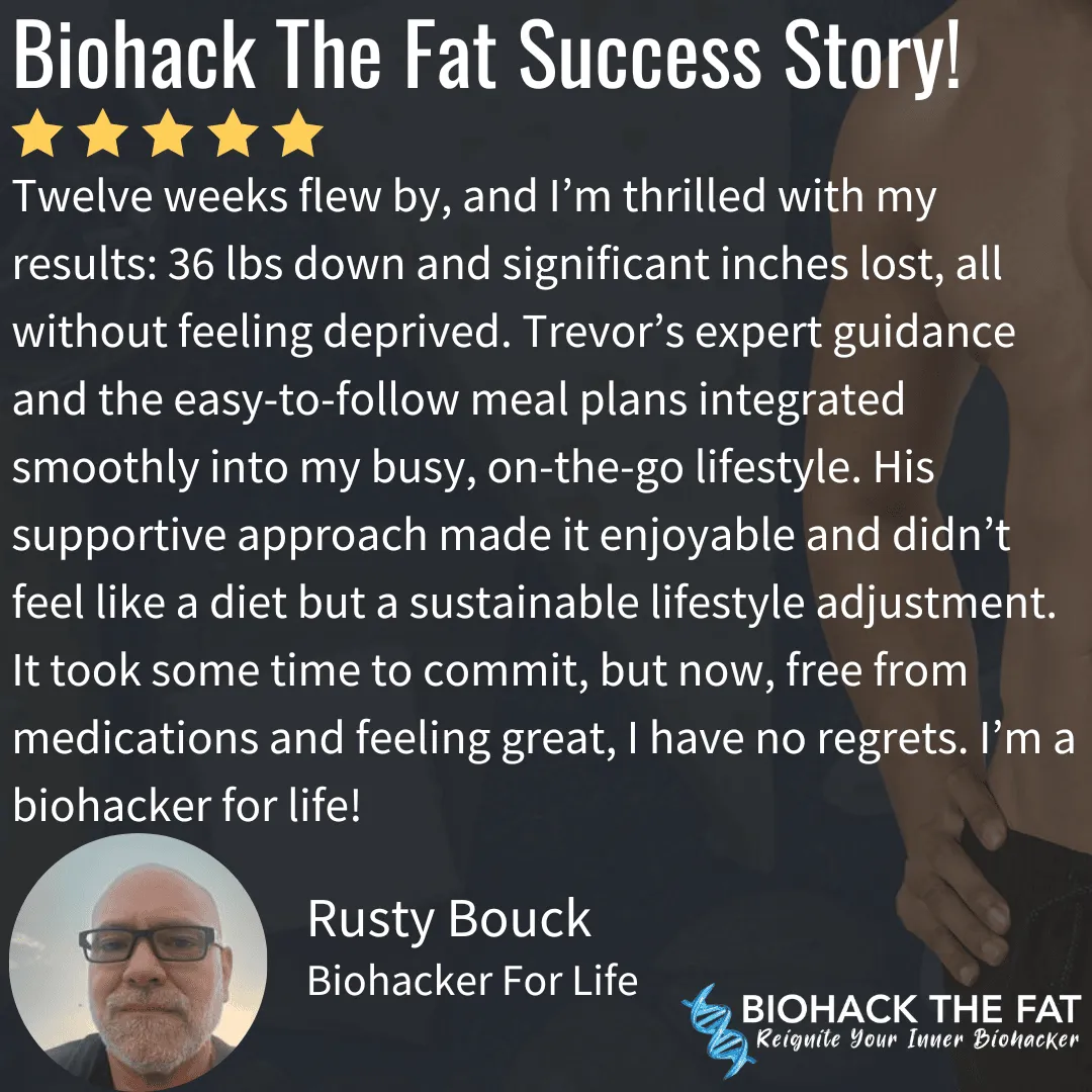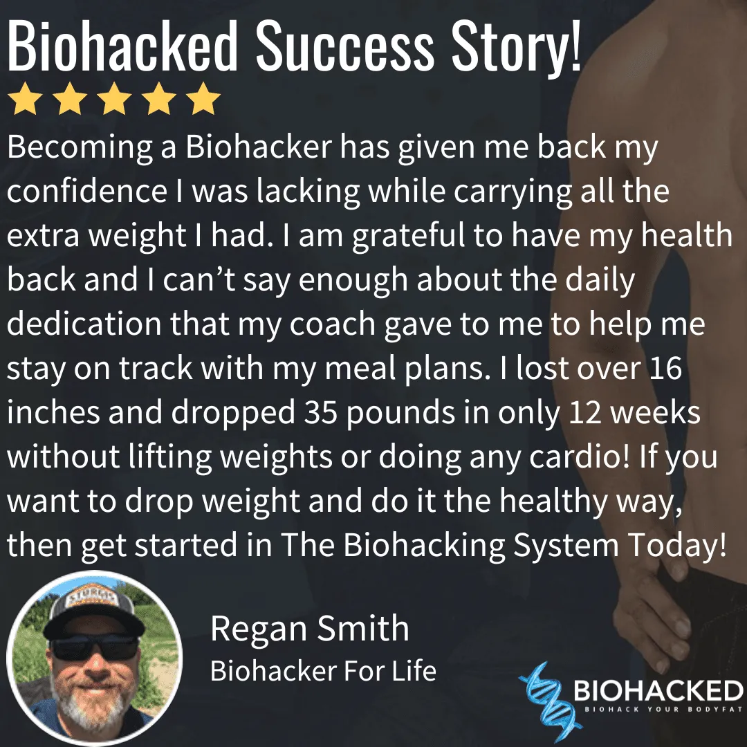 Daryl's transformation is nothing short of amazing! In just 3 months with the Biohack The Fat Weight Loss System, he dropped 30 lbs, lost 15 inches, and reduced his body fat by nearly 6%. But the results didn’t stop there—his eczema improved, allergies lessened, and he started sleeping better than ever before!